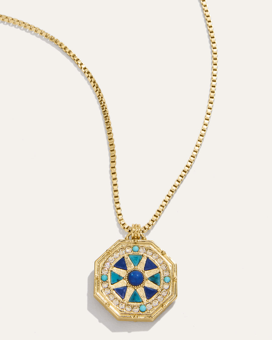 - Genuine 10-karat gold-dipped brass with premium simulated diamond, turquoise and lapis stone detail
